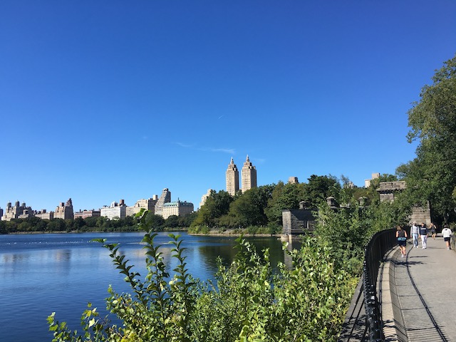 一つは、セントラル・パーク内のReservoir (レゼボワ=貯水池)周回コース。これは86st~96st辺りを占めていて、レゼボワ周りを砂地の散歩道が囲っています。一周2.5km弱くらいで、2周するとおよそ5km走る事ができます。このレゼボワ周りは水面の先にミッドタウンのビル群もアッパーウエスト&イーストも見えて景色的にとても気持ちの良い場所ですが、何周もするには道が少し狭くスピードも出しにくい感じがします。逆に5km以上走りたいという気持ちがあるなら前回紹介したコースの方が、より長く変化のある道を楽しめます。