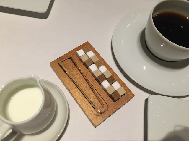 さらに、コーヒーに付いてくる砂糖が東京駅の煉瓦をイメージした三色の砂糖を綺麗に並べてくれていて、何とも芸が細かくて感心します。