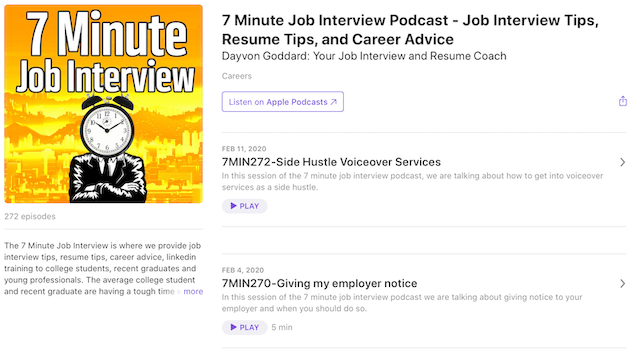 英語でのPodcastで Job Interview などと検索すると、色々な番組が出てきます。その中で私が選んだのは “7 Minute Job Interview” という番組です。